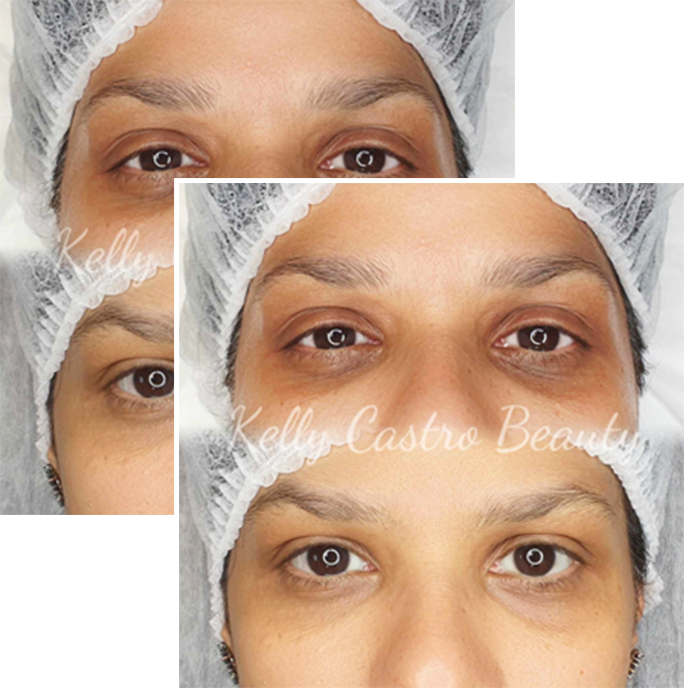 nas áreas escuras ao redor dos olhos, diminuindo gradativamente o contraste entre as olheiras e o restante da pele. Através das micro lesões causadas pelas agulhas, o procedimento também estimula a